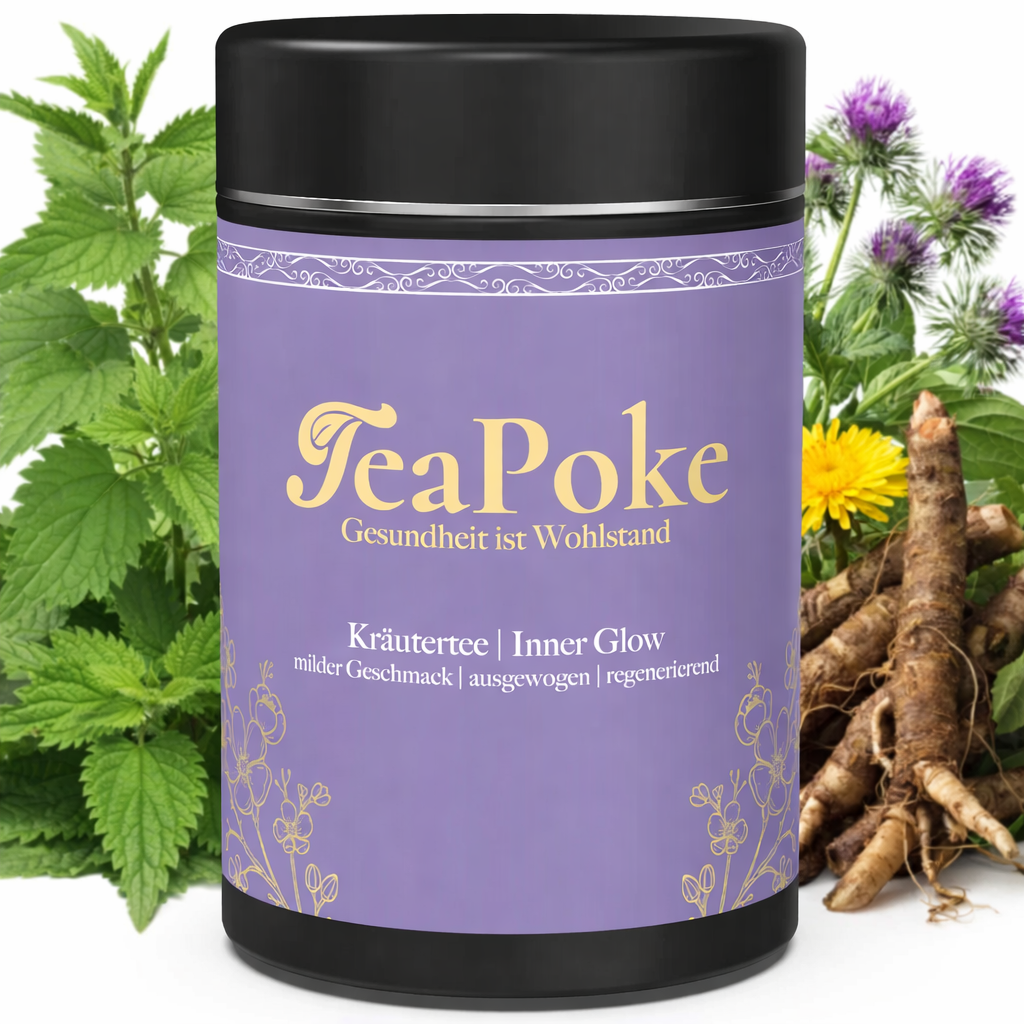 Inner Glow vereint kraftvolle Kräuter, sanfte Gewürze und eine feine Grüntee-Basis zu einem Tee, der dich dabei unterstützt, dich von innen heraus wohlzufühlen.